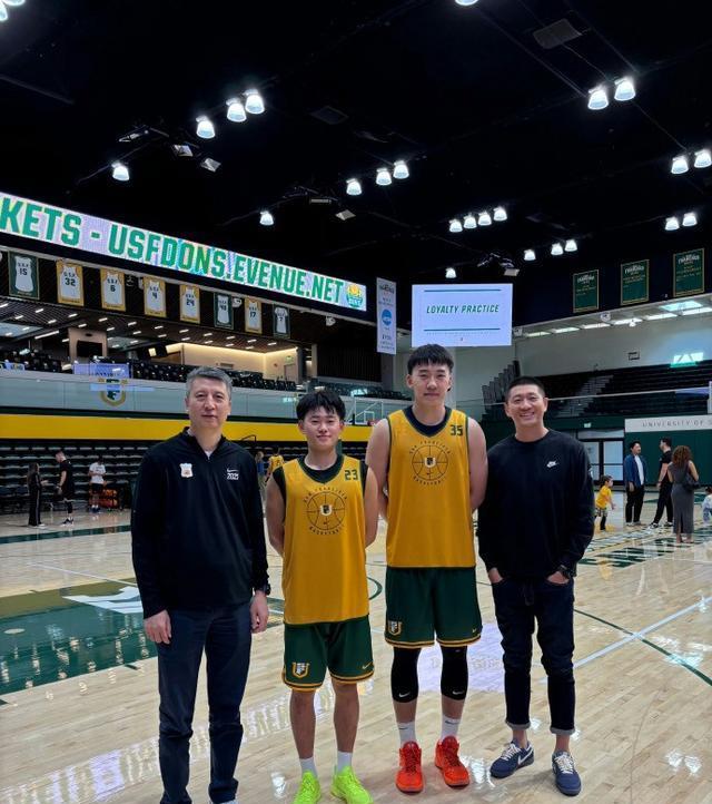 最新消息,中国男篮主教练郭士强指导和助理教练李昂,前往美国旧金山大学看望王俊杰和赵维伦。